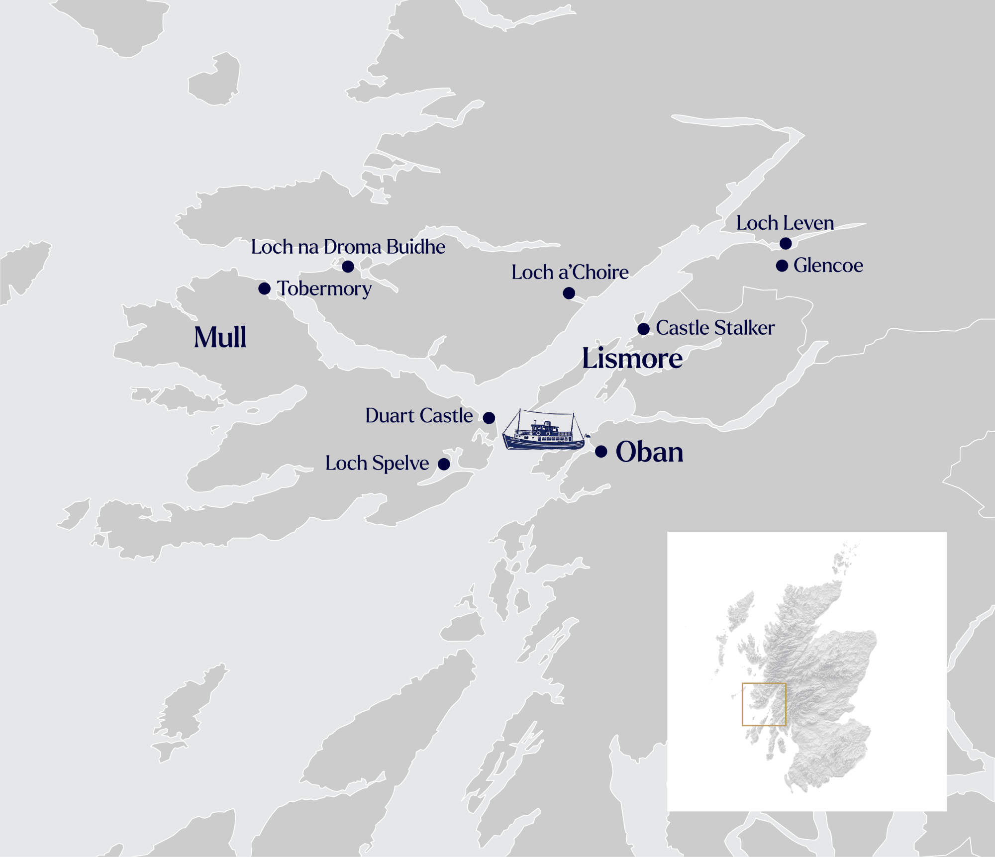 This short break cruise in sheltered waters provides a taste of everything our longer cruises offer. Glide through splendid coastal scenery, visit coastal communities, soak in the local history and culture, enjoy delicious gourmet food and experience the very best of Highland hospitality afloat. In a few days, experience all aspects of the dramatic scenery the west coast of Scotland offers with a choice of anchorages fringed with forests and mighty mountain ranges. The cruising area stretches from Loch Linnhe and Glencoe, to the Sound of Mull, Tobermory and Loch Sunart, exploring many hidden coves and inlets on the way. The coastlines are dotted with ancient castles and historic relics to view from the sea or to go ashore and explore.
