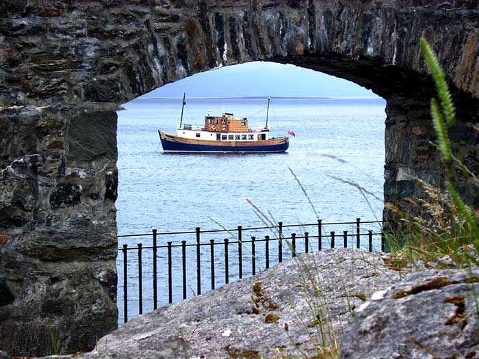 The approach to the Isle of Skye from the Sound of Sleat is awe-inspiring, with the outline of the Cuillin mountain range a dramatic backdrop above the deeply indented coastline. To reach Skye, the itinerary takes in the coast of Ardnamurchan and the “Small Isles” of Rum, Eigg, Canna and Muck; the close location of these islands, each uniquely different from the other, is an island-hopping delight. On the Scottish west coast, with views of the Isles of Skye and Raasay ever present, there is a choice of fjord-like sea lochs to explore including Loch Carron, Loch Nevis, Loch Hourn and Loch Torridon. The quintessential Scottish Castle, Eilean Donan, is en route, set scenically at the meeting point of another three sea lochs.
