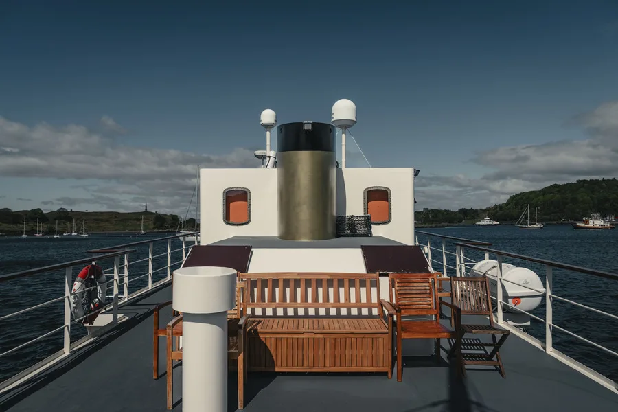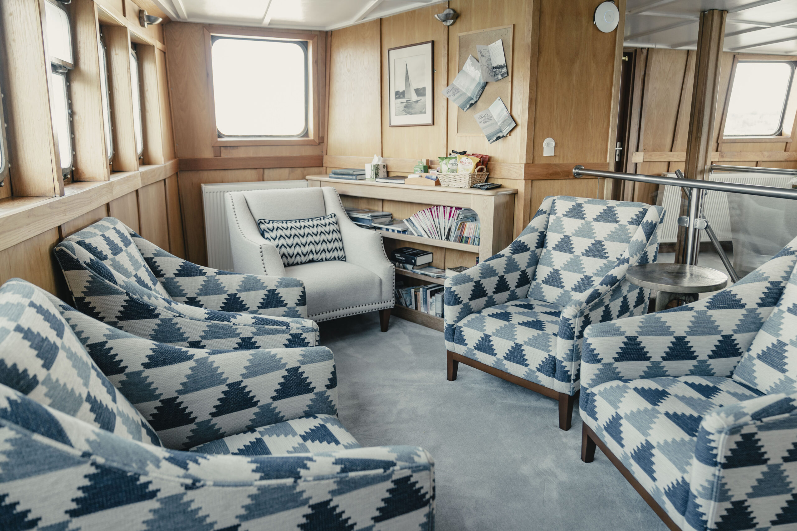 There are two top decks, the sheltered aft sun deck with sun loungers and the fore deck which is ideal for wildlife watching. Alternatively, there is plenty of space to find a corner to settle down with a book.