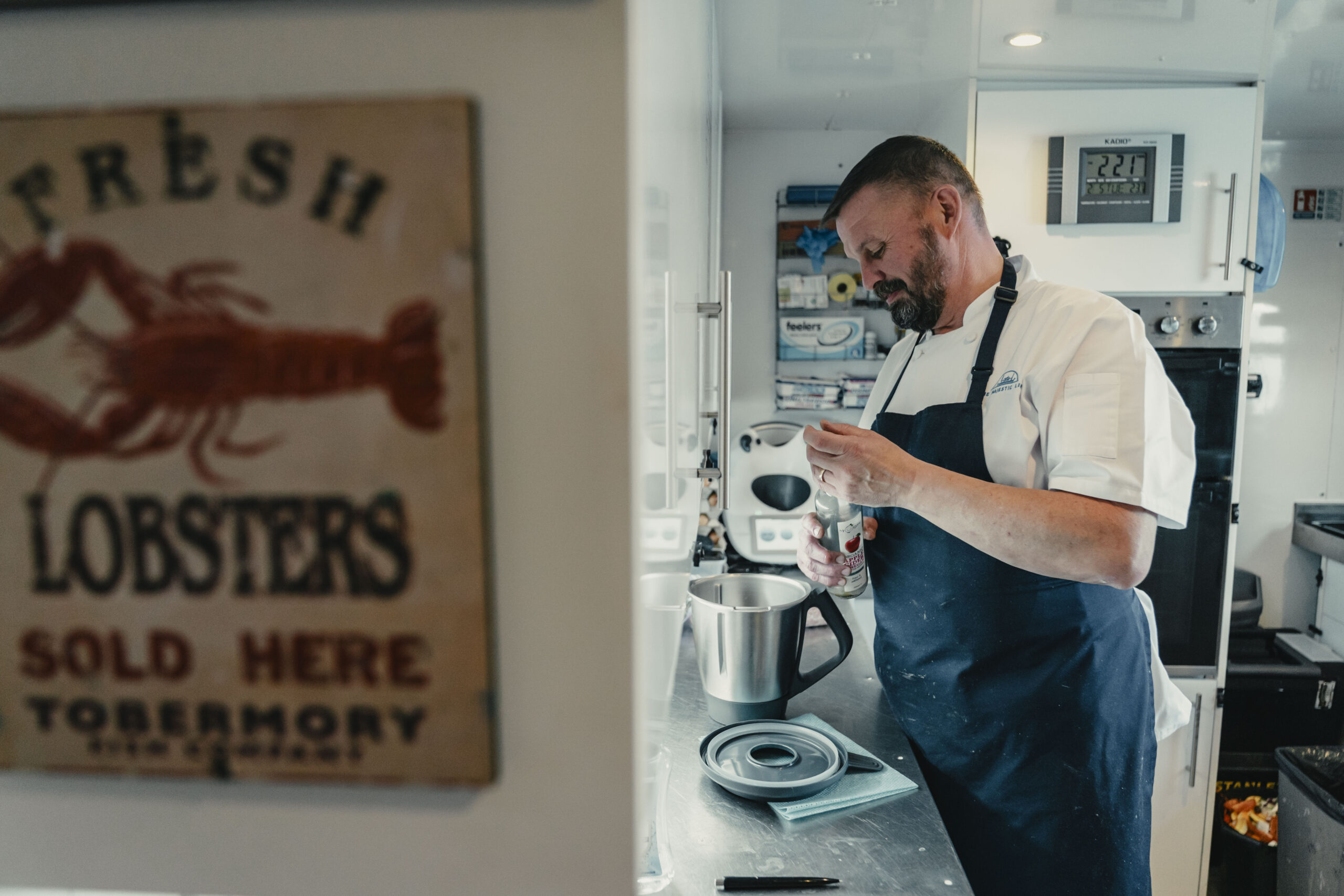 All meals are served at the communal table in the dining saloon, although canapes and drinks are often served on the outdoor aft deck, or in the forward bar saloon. Early risers are welcomed by a hot drink and any other sustenance required until breakfast is served. The library stocks books on local maps, history, wildlife and attractions and a range of board and other games.