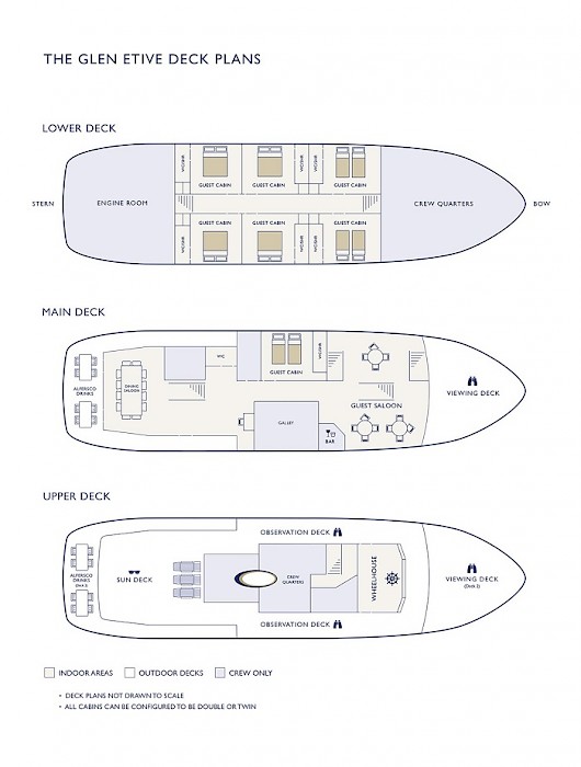 Glen Etive has 7 en-suite double/twin cabins and can accommodate a maximum of 12 guests.
