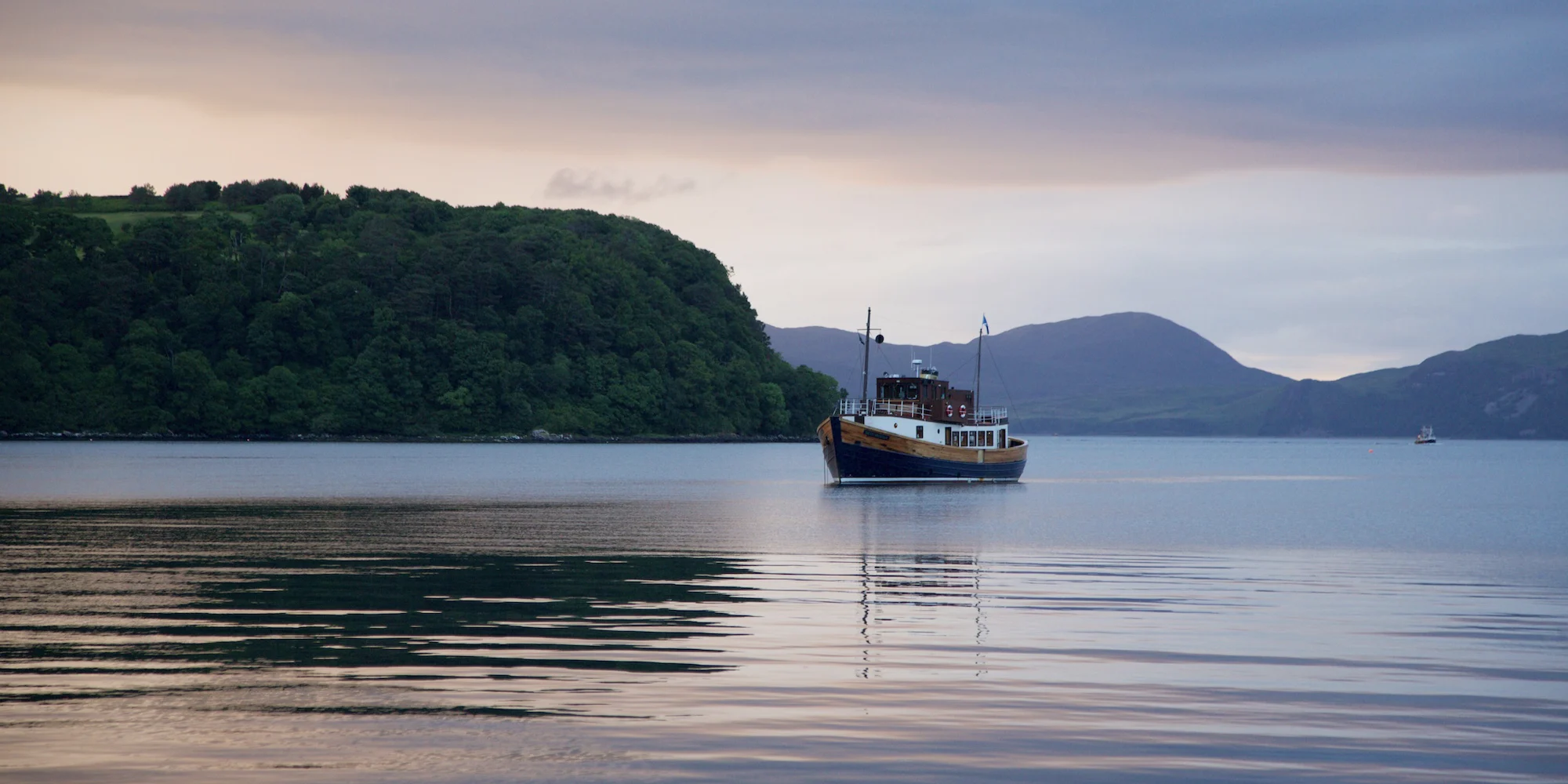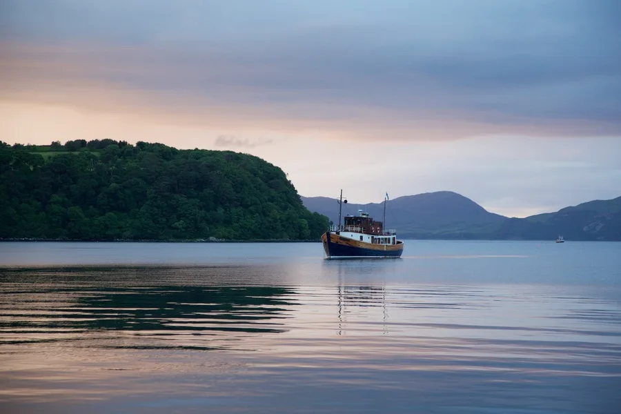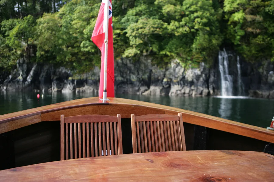 Like her sister ship Glen Massan, the Glen Tarsan is a lovingly converted wooden hulled former fishing boat. The spacious deck saloon/dining area is where our guests gather and relax – enjoying a book, some conversation, a board game, or simply watching the enchanting Scottish scenery roll by through the panoramic windows. The deck saloon has been redecorated in 2025 with a modern twist on a classic nautical feel. Special attention has been given to providing upholstered furniture providing the utmost comfort to our guests for their lounging needs. Like all our boats, Glen Tarsan is equipped with high-speed onboard Wi-Fi.